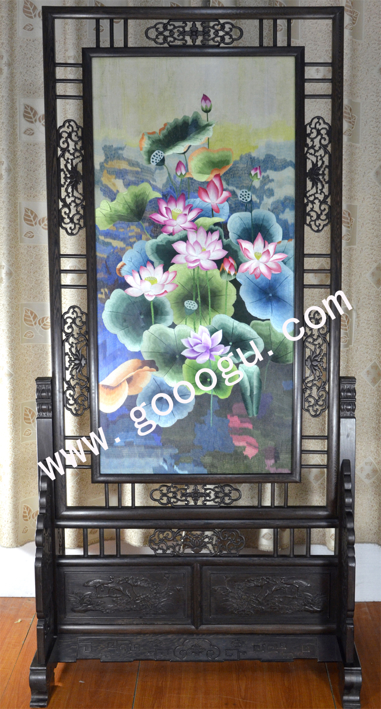 蘇繡精品屏風 滿繡隔斷 純手工精品 荷花 中式屏風